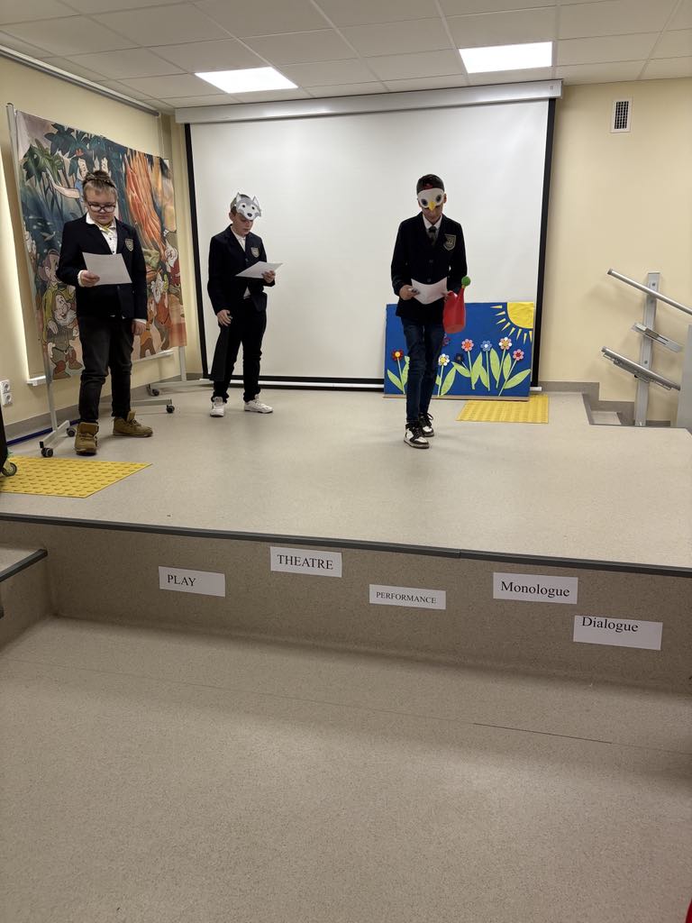 Po pasirodymo visi dalyviai – tiek mokiniai, tiek mokytojai – buvo pakviesti į bendrą ratą žaisti smagių dramos žaidimų. Naudodami teatrinio ugdymo metodus, mokiniai tapo tikrais aktoriais: mokėsi atsipalaiduoti, reikšti emocijas, judėti, demonstruoti pantomimą, gestus, improvizuoti. Žaisdami jie taip pat susipažino su anglišku teatro žodynu, kuris buvo kūrybiškai priklijuotas įvairiose vietose užsiėmimo patalpoje – ant stalų, kėdžių, scenos.
