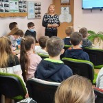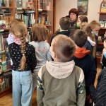 Z wielką radością powitała nas pani Natalija i pani Teresa. Dzieci dowiedziały się od pani bibliotekarki, jaka jest różnica między biblioteką a księgarnią, co należy robić, aby zostać czytelnikiem biblioteki, jak należy zachowywać się, jak chronić książki przed zniszczeniem. Zobaczyły także jak wygląda karta czytelnika oraz poznały zasady wypożyczania książek. W trakcie pobytu w bibliotece uczniowie rozwiązywali zagadki, czytali, deklamowali wiersze.