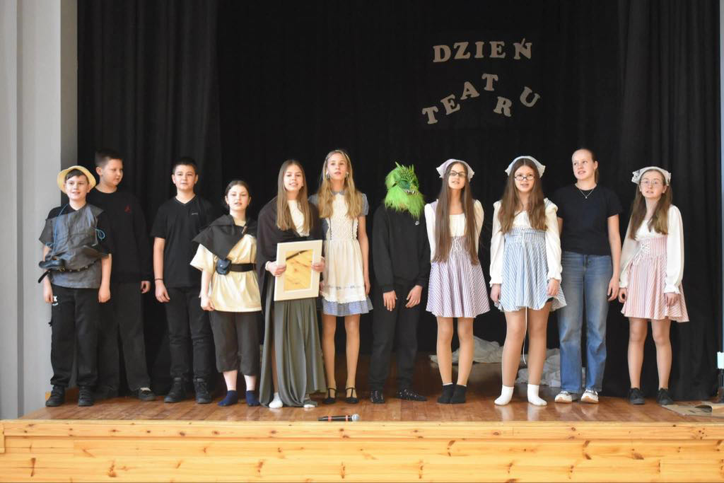 26 marca w naszym gimnazjum mieliśmy wyjątkową okazję, by świętować moc teatru – miejsca, gdzie spotykają się wyobraźnia, emocje i sztuka. To dzień, w którym pokazujemy, jak wielką rolę odgrywają w naszym życiu kreatywność, wyrażanie siebie oraz współpraca.