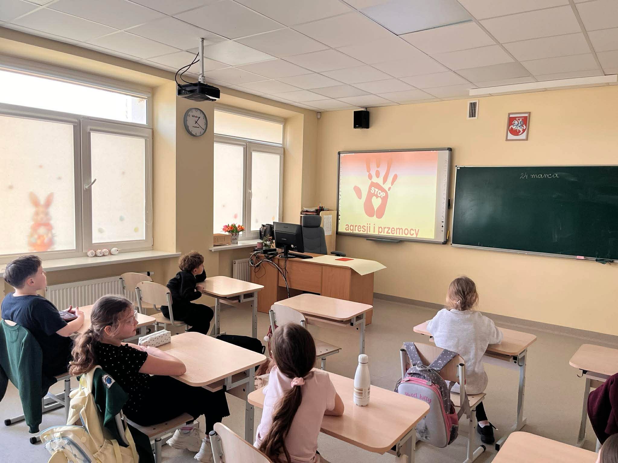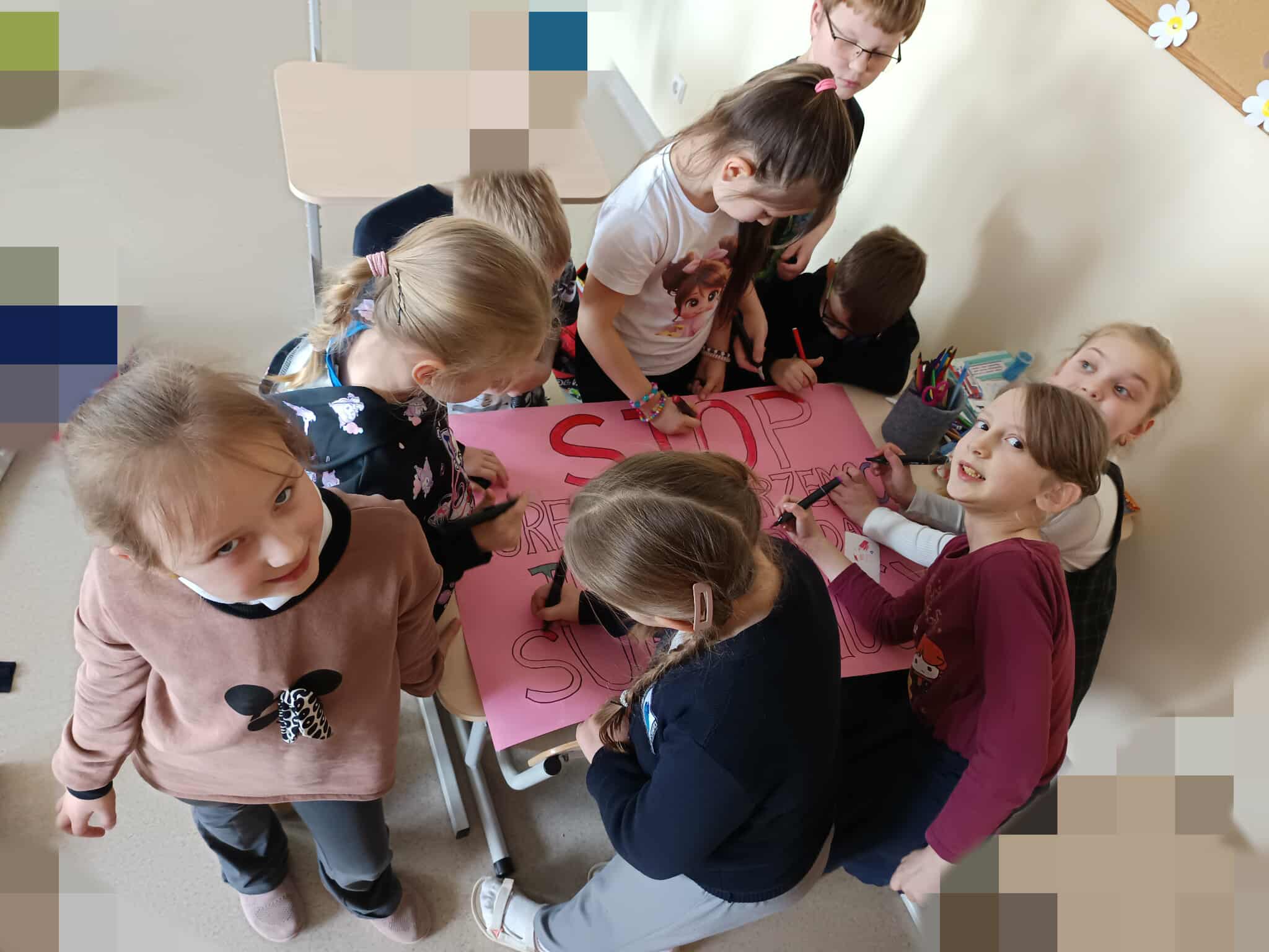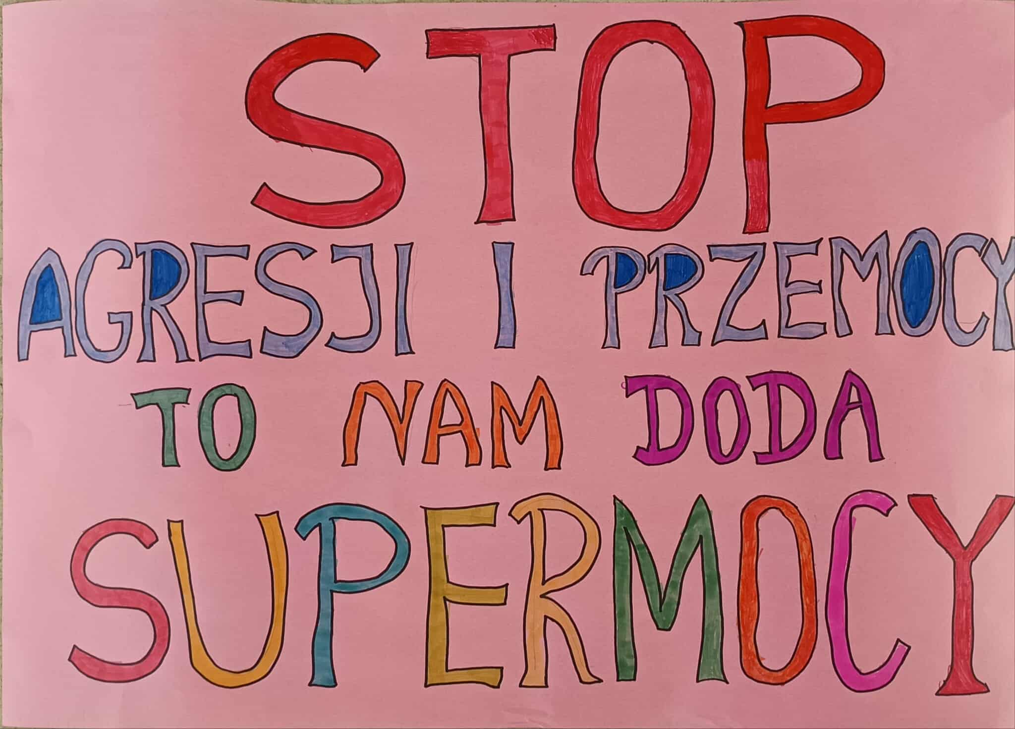 W ramach akcji dzieci przygotowały plakaty promujące hasło „Stop przemocy” oraz oglądały krótkie filmiki edukacyjne, które w przystępny sposób przybliżyły omawiane zagadnienia.