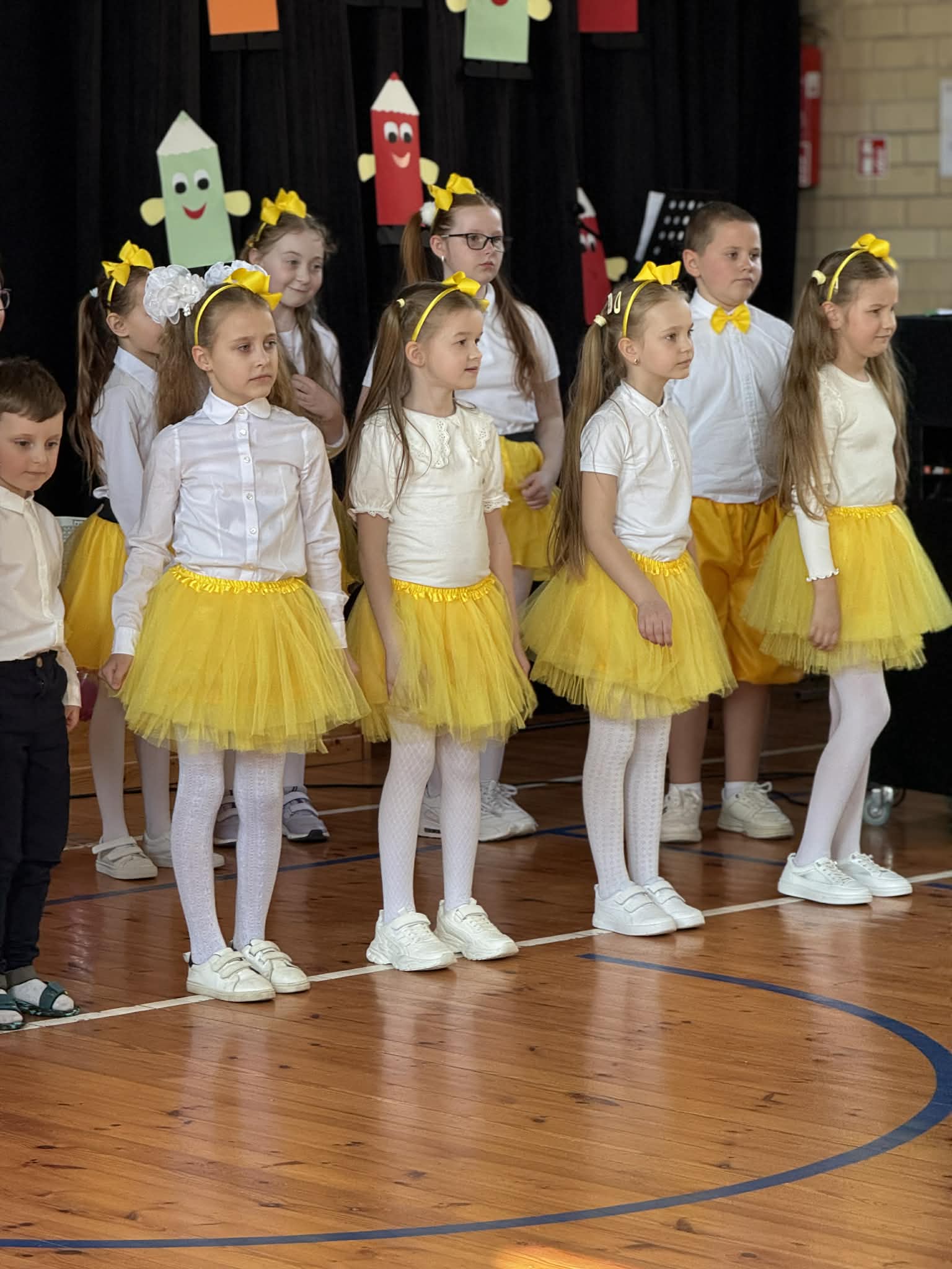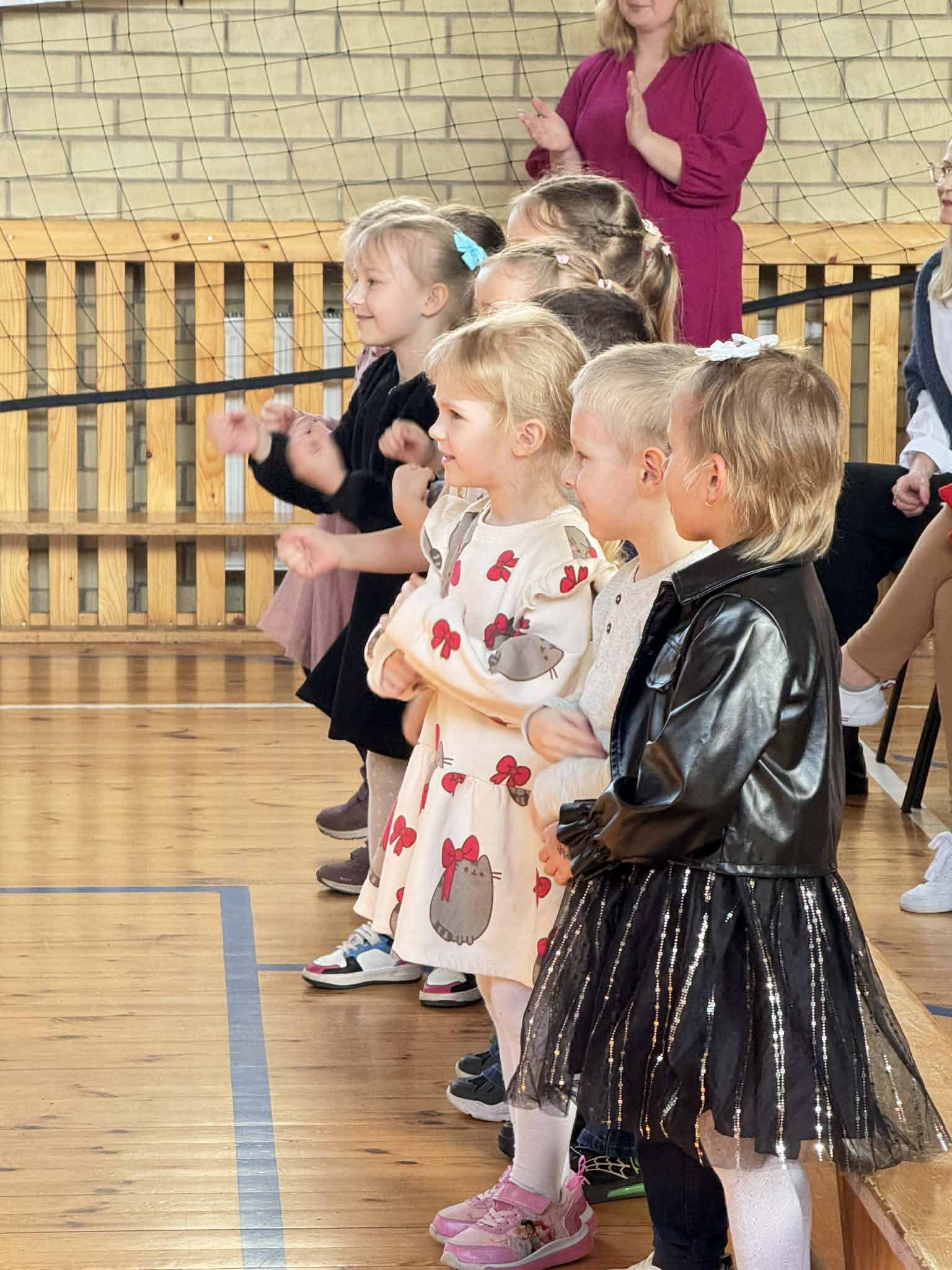 Szczególne uznanie zdobyły jednak najmłodsze dzieci – zerówkowicze oraz uczniowie klas początkowych – którzy oczarowali widzów wspólnym śpiewem i tańcem, angażując do zabawy także najmłodszych gości.