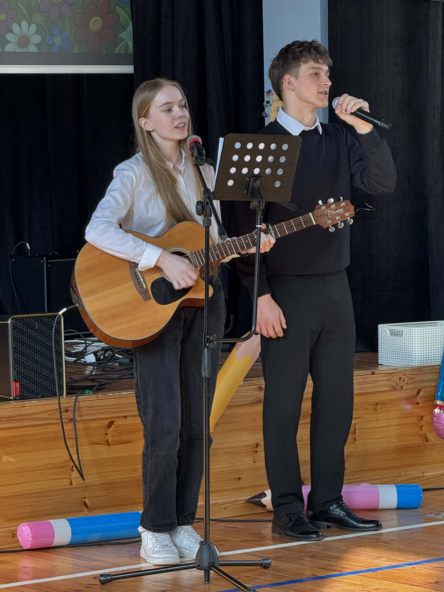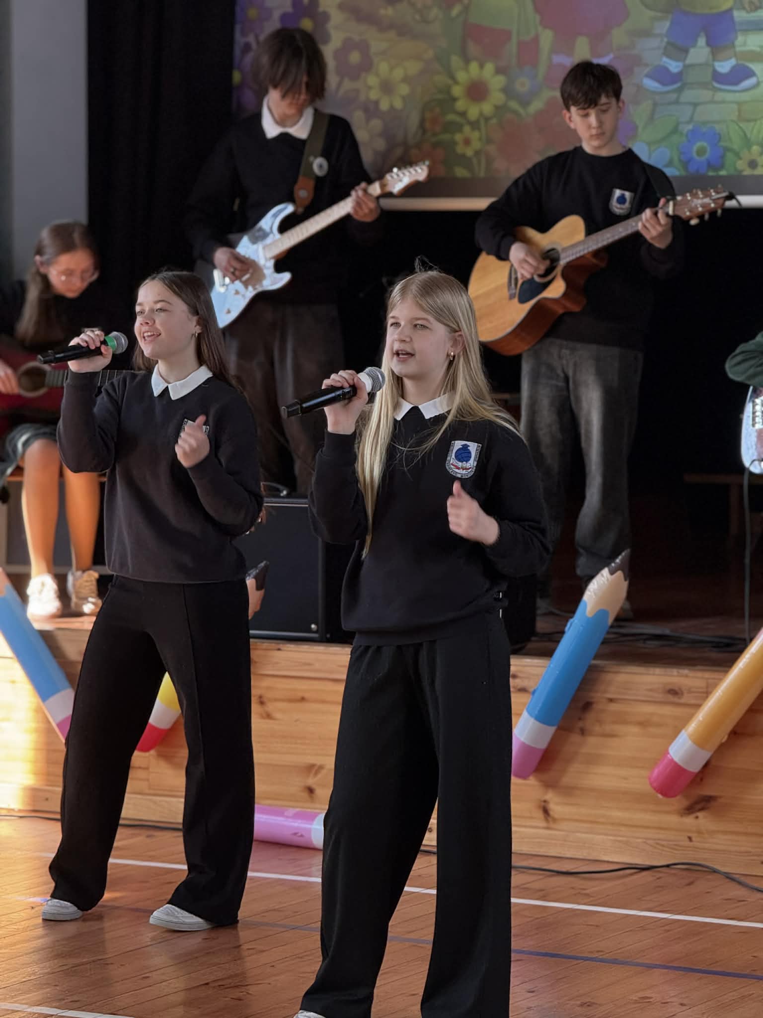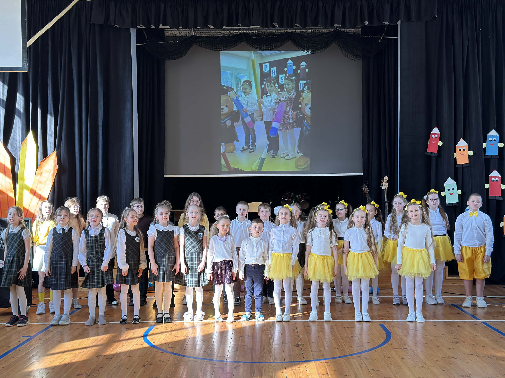 Uroczystość rozpoczęła się częścią artystyczną przygotowaną przez uczniów przy wsparciu nauczycieli. Jako pierwsi na scenie zaprezentowali się uczniowie klas 1–4 wraz z grupą przygotowawczą. Następnie wystąpiła klasa czwarta, przedstawiając krótką scenkę w języku angielskim. Z kolei uczniowie klas pierwszej i trzeciej wykonali piosenkę w języku litewskim. Starsi uczniowie pojawili się na scenie przy akompaniamencie zespołu grającego na żywo, zachwycając publiczność starannie przygotowanym programem.