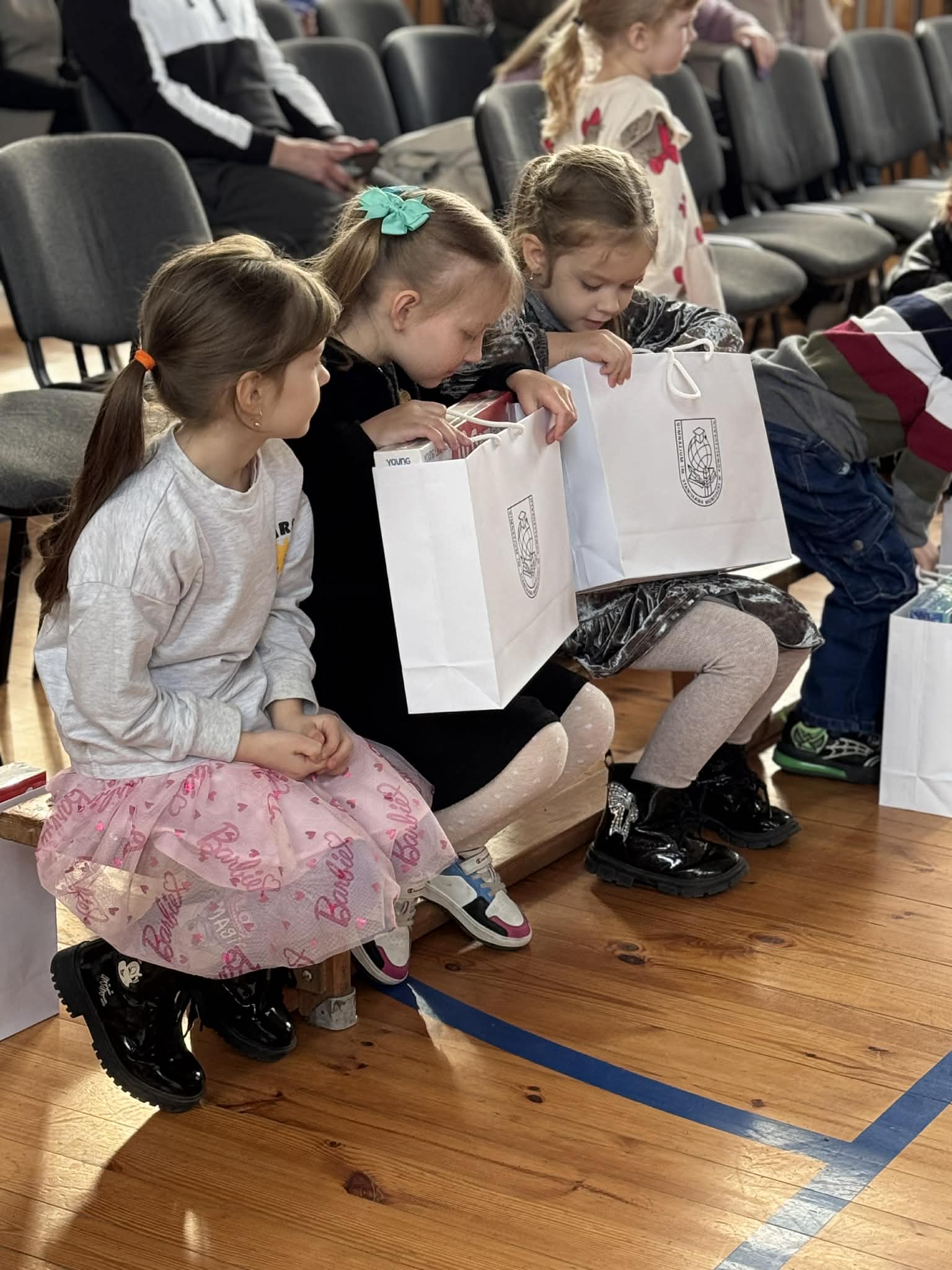 Nie zabrakło również licznych zabaw integracyjnych, w których wszyscy z radością brali udział, szczególnie gdy do wspólnej zabawy dołączył sam Mikołaj. Kulminacyjnym momentem spotkania było wręczenie prezentów, które wywołało wiele uśmiechów i pozytywnych emocji.