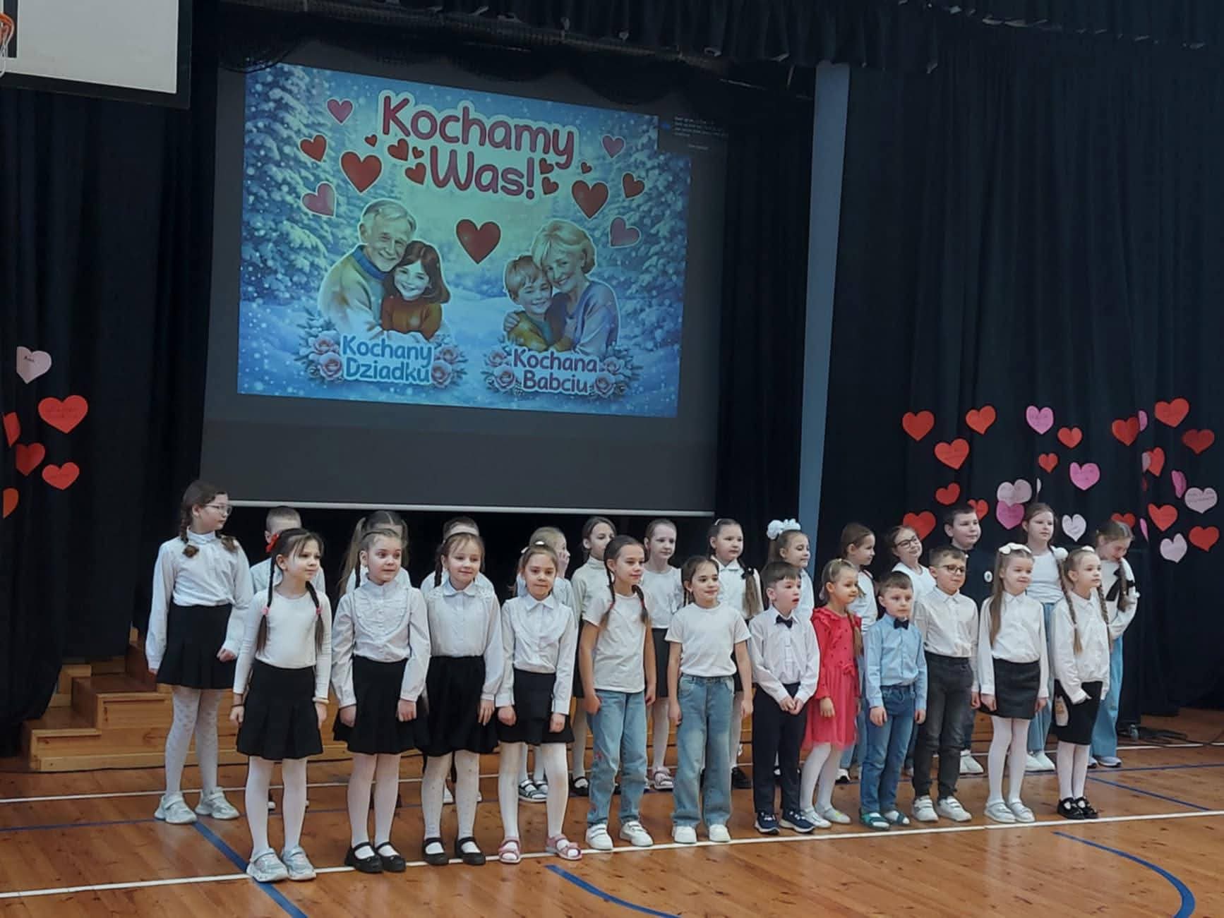 Była to szczególna okazja do okazania wdzięczności, szacunku oraz miłości naszym Babciom i Dziadkom. Sala wypełniła się ciepłą, rodzinną atmosferą oraz uśmiechami dumnych gości. Uczniowie klas początkowych przygotowali część artystyczną, podczas której zaprezentowali wiersze, piosenki oraz występy taneczne, dostarczając zaproszonym Babciom i Dziadkom wielu wzruszeń i radości.