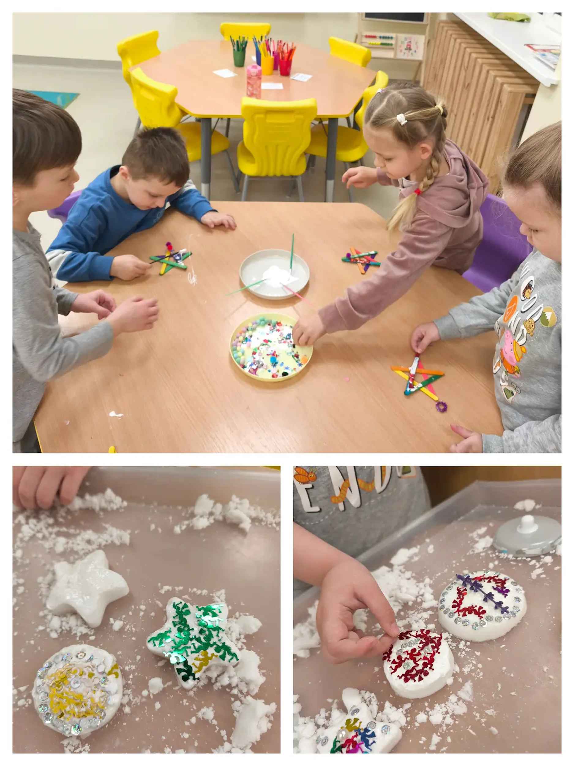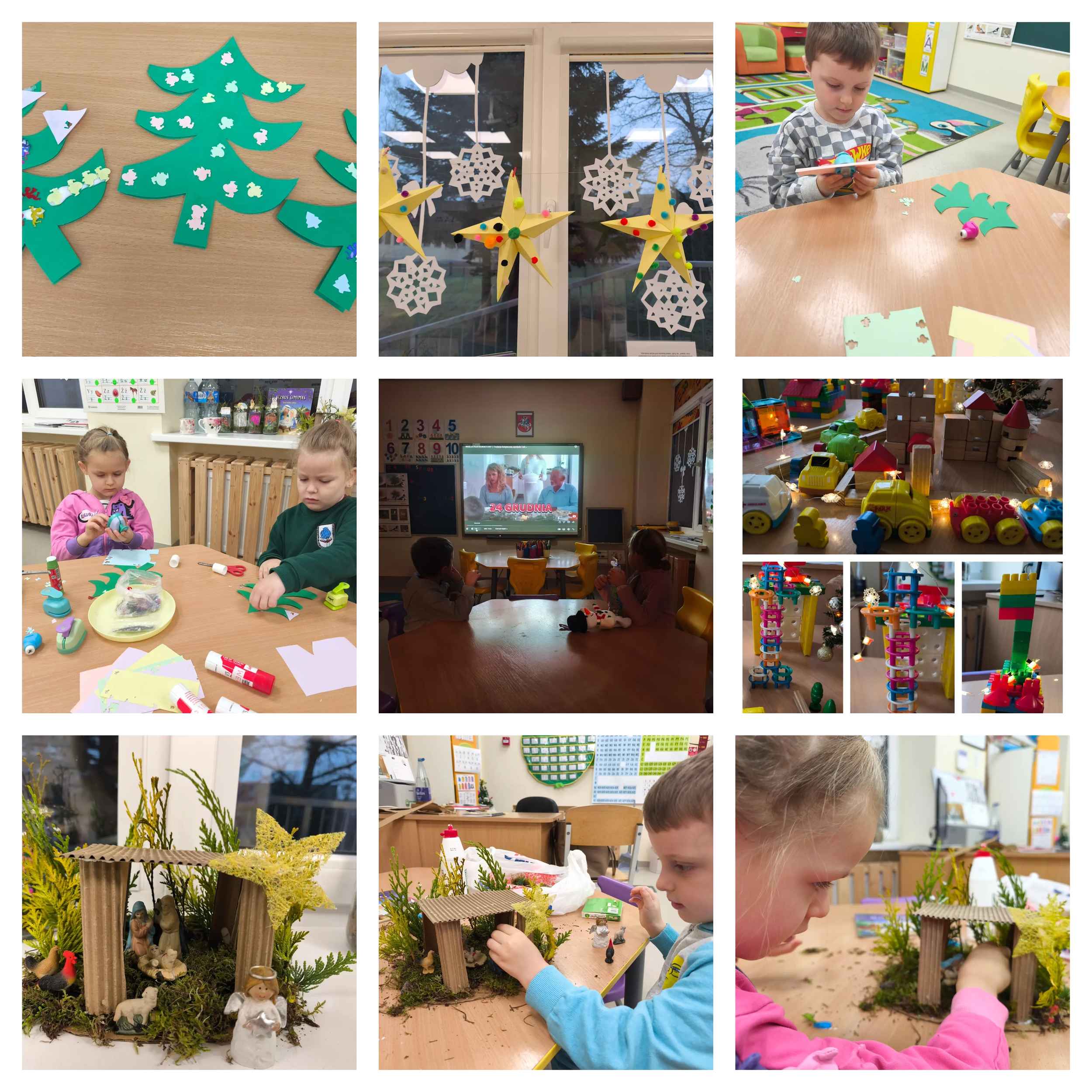 Uczestnicy wykonywali różnorodne prace plastyczne inspirowane zimą, śpiewali piosenki o zimowym charakterze oraz oglądali filmiki i bajki związane z tą porą roku. Z dużym entuzjazmem inscenizowali scenki, wcielając się w rozmaite postacie, co sprzyjało rozwijaniu wyobraźni oraz umiejętności aktorskich. Nie zabrakło także aktywności na świeżym powietrzu – dzieci bawiły się na śniegu i brały udział w licznych konkursach. Projekt dostarczył wszystkim wielu pozytywnych emocji i stanowił doskonałą okazję do nauki poprzez zabawę.