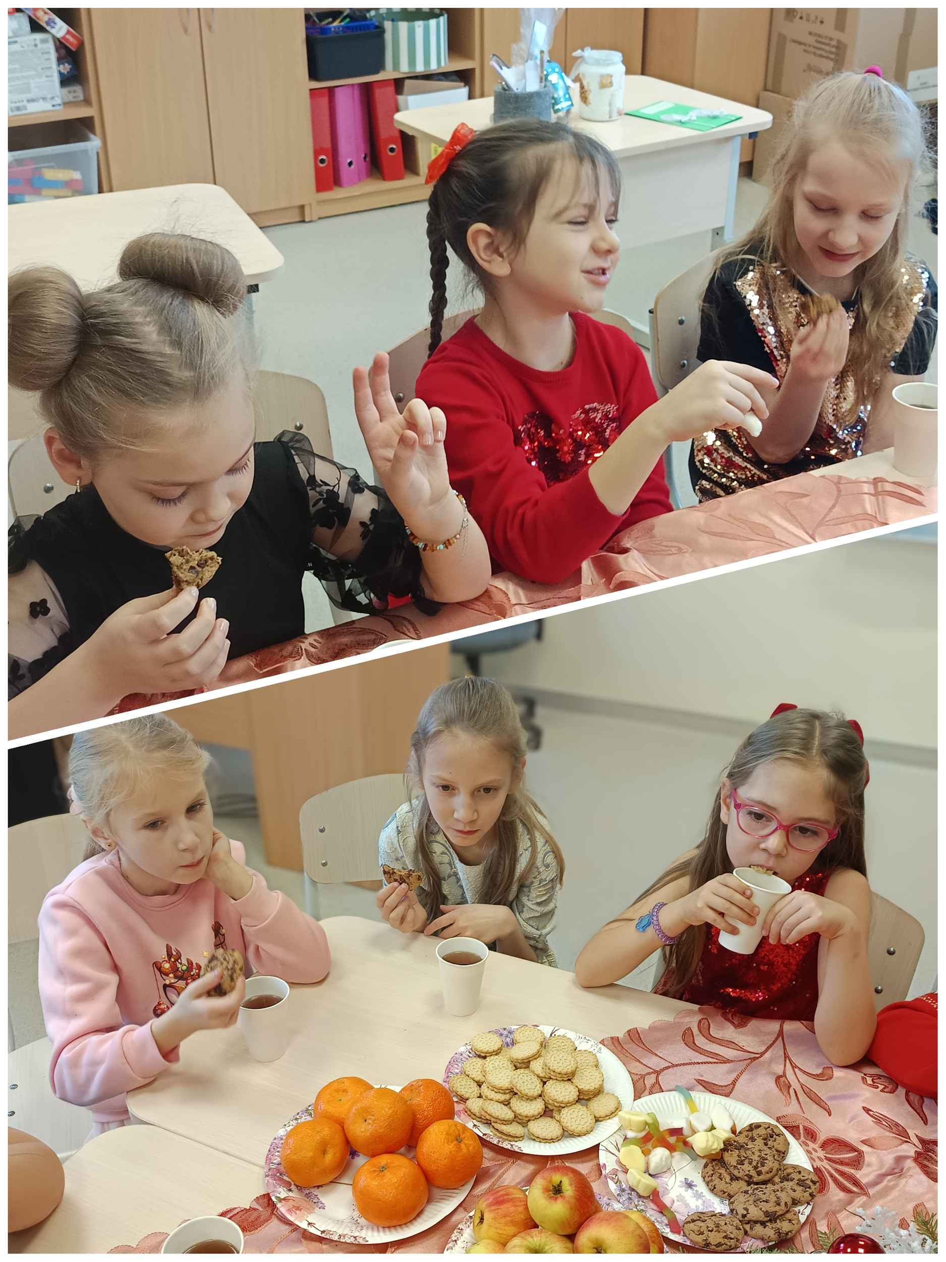 Spotkanie zakończyło się przy słodkim poczęstunku, wspólnych rozmowach, uściskach oraz wręczeniu drobnych upominków przygotowanych przez dzieci.