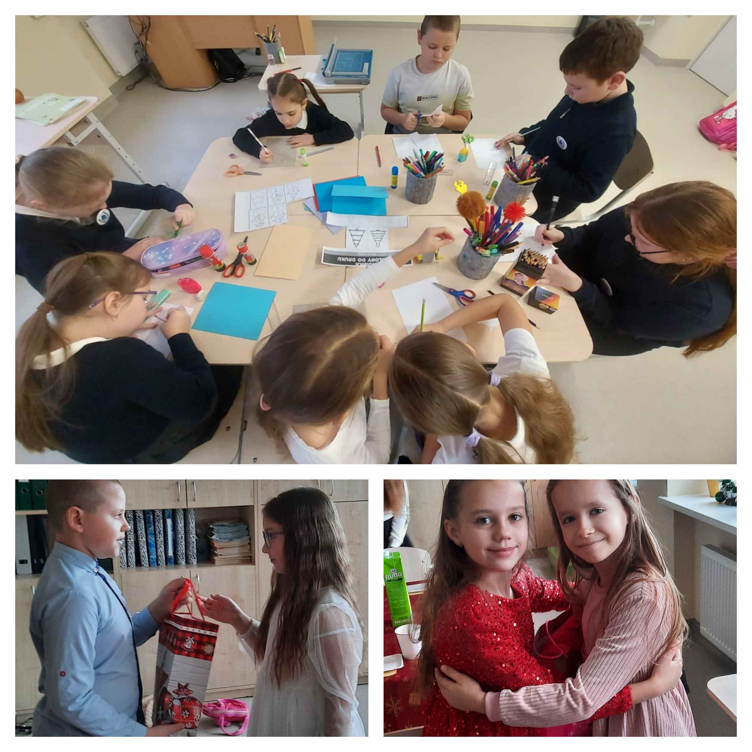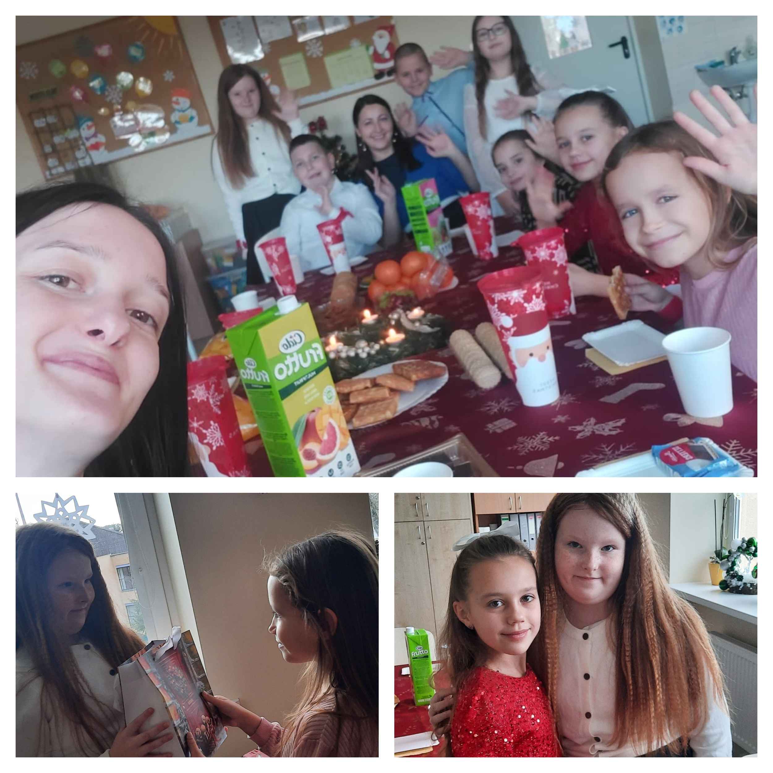 Nie zabrakło również licznych zabaw integracyjnych, w których wszyscy z radością brali udział, szczególnie gdy do wspólnej zabawy dołączył sam Mikołaj. Kulminacyjnym momentem spotkania było wręczenie prezentów, które wywołało wiele uśmiechów i pozytywnych emocji.