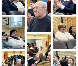 Korzystając z zaproszenia nauczycielki języka angielskiego w gimnazjum im. J. I. Kraszewskiego w Wilnie Olgi Nowickiej i uczniów 8b klasy, 19 grudnia uczniowie 8 klasy naszego gimnazjum wzięli udział w wyjątkowej, świątecznej lekcji terenowej, która połączyła naukę języka angielskiego z aktywną zabawą. Uczestnicy zostali podzieleni na międzyszkolne grupy, co sprzyjało integracji i współpracy między rówieśnikami. Zajęcia zostały zorganizowane w formie siedmiu stanowisk, z których każde oferowało inne zadanie. Na uczestników czekały zagadki językowe, pantomimy, śpiewanie piosenek po angielsku oraz wyzwania sprawnościowe, które wprowadzały w świąteczny nastrój i jednocześnie rozwijały różnorodne umiejętności.