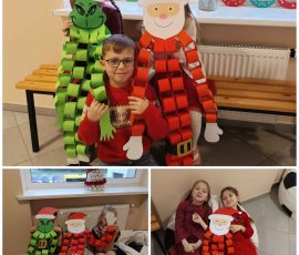 Uczniowie przemieszczali się od stanowiska do stanowiska, wykonując zadania wyłącznie w języku angielskim. Dzięki temu lekcja stała się nie tylko okazją do zabawy, lecz także praktycznym treningiem komunikacji i współpracy. Ruch, rywalizacja i świąteczna atmosfera sprawiły, że każdy mógł znaleźć coś dla siebie.