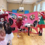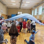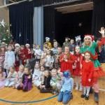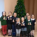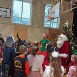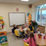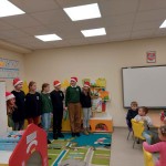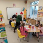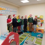 Uczniowie 6 klasy odwiedzili swych najmłodszych kolegów, aby w zabawny sposób pouczyć ich języka angielskiego (nauczyciel – Renata Krasowska). Dzieci przedstawiły się i nazwały kolory, a dobrze znana piosenka przedświąteczna rozweseliła każdego. Na koniec wspólnej krótkiej lekcji zerówkowicze otrzymali rysunki do kolorowania.