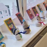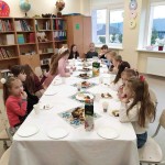 Następnie wszystkie dzieci udały się do klasy, aby wykonać pracę plastyczną, która tematycznie wiązała się ze zbliżającymi się Świętami Wielkiej Nocy. Musiały udekorować papierowe jajka. To sprawiło wszystkim wiele radości, zintegrowało uczniów i gości oraz dostarczyło moc pozytywnych emocji. Słodki poczęstunek był uwieńczeniem święta.