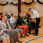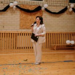 Następnie uczniowie podziękowali dyrekcji i nauczycielom za wysiłek i starania wkładane w pracę szkoły, wręczając kwiaty. Głos zabrała również wychowawczyni Alina Podworska, która życzyła swoim uczniom wspaniałej zabawy, przypomniała też, że stoi przed nimi ogromne wyzwanie, czyli matura i muszą się postarać, aby zdać ją jak najlepiej. Dodała, że zarówno wszystko ma gdzieś swój początek i zbiega się w jakimś punkcie. Nauka w gimnazjum już niezadługo się skończy. Za około 100 dni przystąpią do egzaminu maturalnego, egzaminu dojrzałości. Życzyła wszystkim obecnym, aby miłe wspomnienia minionego wieczoru pozostały na długie lata. Uczniowie klasy IIIG przyszykowali sprawdzian, podczas którego wyjaśniło się, jak dobrze maturzyści znają swoich nauczycieli i gimnazjum. Życzyli oni dla swych starszych kolegów powodzenia w dalszej nauce i dobrych wyników na maturze oraz wręczyli studniówkowy kalendarz i tort.