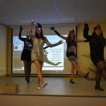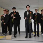 Podczas Międzynarodowego Dnia Kobiet uczniom klasy IIG udało się wprowadzić wszystkie pracujące w szkole panie w atmosferę lat 20-tych i 30-tych dwudziestego stulecia. Ze sceny popłynęło wiele pięknych myśli o kobiecie, których autorami byli politycy, pisarze, myśliciele. Na prezentacji można było obejrzeć słynne kobiety danego okresu. Dziewczęta w prezencie paniom złożyły taniec okresu międzywojennego – charleston. Stroje, akcesoria lat 20-tych oraz skoczna melodia przeniosły wszystkich o stulecie wstecz. Następnie na scenę wyszli chłopcy z bukietami róż, którzy zaśpiewali popularną piosenkę tego okresu wykonywaną przez E. Bodo „Umówiłem się z nią na 9” i wręczyli siedzącym na sali paniom kwiaty. Kulminacją koncertu była inscenizacja „Złota rybka” w nowej odsłonie oraz piosenka po angielsku z roku 1928 w nowoczesnej aranżacji. Program artystyczny ukazał różne oblicza kobiece: roztańczone, zakochane, złośliwe i romantyczne.