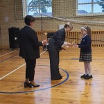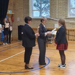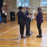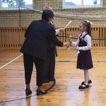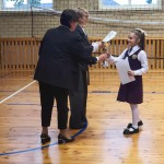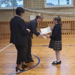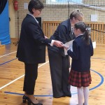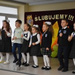 Ważną częścią uroczystości było ślubowanie. Wszyscy głośno i z przekonaniem przyrzekali być dobrymi i pilnymi uczniami oraz rzetelnie wypełniać swoje obowiązki. Punktem kulminacyjnym było pasowanie. Pani dyrektor, Katarzyna Macuk, „magicznym ołówkiem“ pasowała każdego zerówkowicza i pierwszaka na Ucznia Gimnazjum. Nasi najmłodsi koledzy i koleżanki zostali oficjalnie przyjęci do grona uczniów. Na pamiątkę spotkania, każdy otrzymał w prezencie piękny upominek: kredki, plastelinę, lizaczki oraz kluczyk ,,do krainy wiedzy”. O ważności święta przypominać będą również otrzymane dyplomy i pamiątkowe zdjęcia.