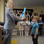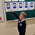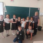 Uczniowie klasy 1-ejmieli spotkanie ze specjalistą do spraw zdrowia publicznego oraz z policjantką. Przypomniały zasady bezpiecznego poruszania się po ulicy i chodniku. Dzieci obejrzały krótkie filmiki o tym,jak ważną rolę pełnią elementy odblaskowe, które każdy uczeń powinien posiadać.Pierwszacy aktywnie uczestniczyli w spotkaniu i chętnie dzielili się swoimi spostrzeżeniami.