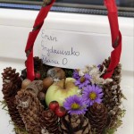 Pomysły z wykorzystaniem jesiennych skarbów były bardzo kreatywne. Mogliśmy podziwiać zwierzątka zrobione z roślin, żołędzi i kasztanów, kolorowe stroiki. Jesienne cudeńka stały się ozdobą korytarzy naszego gimnazjum i zauroczyły całą społeczność jesienną gamą kolorów.
