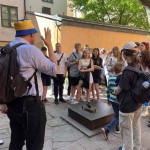 Drugi dzień podróży. W Sztokholmie uczniowie mieli wycieczkę po jednej z najładniej zachowanych starówek średniowiecznych Gamla stan. Obejrzeli Królewski Teatr Dramatyczny, Pałac Królewski, Ratusz, Parlament, Kościół Rycerzy, spacerowali najwęższą ulicą starówki. Zwiedzili muzeum- statek zwany „ Waza”, obserwowali uroczystą zmianę warty przy Pałacu Królewskim, widzieli najmniejszy posąg Sztokholmu ( 14 cm sylwetka chłopczyka spoglądającego na niebo). Pełni wrażeń wróciliśmy statkiem,który z powrotem.