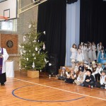 Ksiądz Henryk Naumowicz opowiedział o nieprzemijającej wartości Świąt Bożego Narodzenia , która wprowadziła wszystkich gości w podniosły i wzruszający nastrój, pobłogosławił opłatki, które później nauczyciele rozdali wszystkim zebranym na sali oraz złożył życzenia bożonarodzeniowe. Dopełnieniem tradycji Bożonarodzeniowej była wspólna modlitwa i dzielenie się opłatkiem. Spotkanie przebiegło w atmosferze świątecznej radości i zrozumienia.