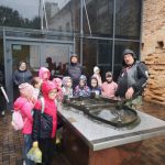 W piątek zaś 9 listopada,jako ciąg dalszy projektu, mieliśmy zaszczyt gościć w gimnazjum uczniów i nauczycieli z Trąbek Wielkich(ok.23 km od Gdańska). Po obejrzeniu uroczystej akademii poświęconej 100 –leciu Niepodległości Polski nasi uczniowie i goście mieli okazję zapoznać się nie tylko przedstawiając prezentacje o ojczystych miejscowościach, szkołach i ich patronach, ale też poznali się bliżej przy herbacie próbując własnych wypieków. Po obiedzie goście zwiedzili okolice Kowalczuk, między innymi pierwszy pomnik na Litwie św. Jana Pawła II i strażnicę Straży Ochrony Pograranicza w Kienie.
